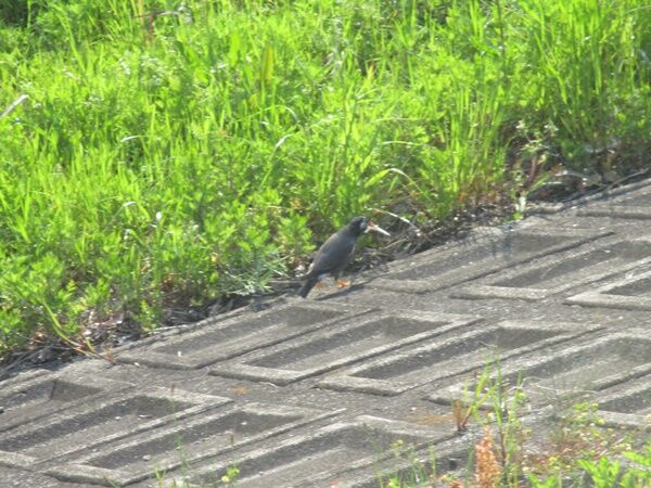 口ばしに何やら白い物を咥えて