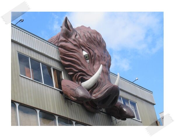 巨大なイノシシが建物を占領してたでしゅ
