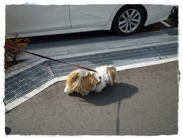 汚れる覚悟で散歩に連れて行って貰ったでしゅ